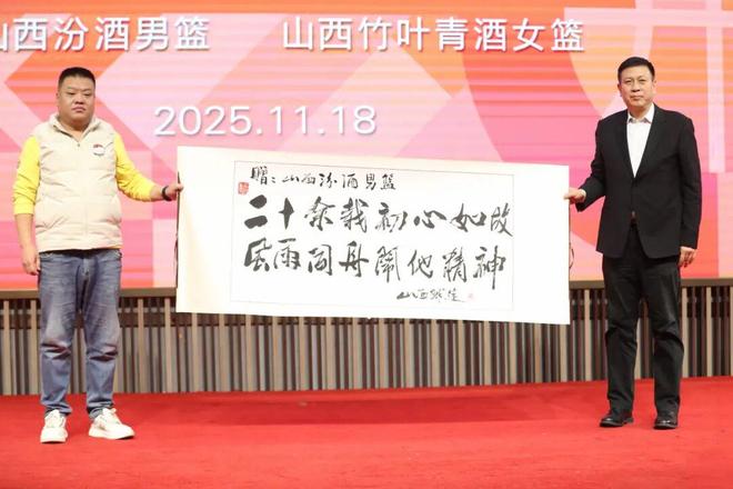 任煜锋代表球迷向山西汾酒职业篮球俱乐部赠送CBA山西男篮成立20周年礼物