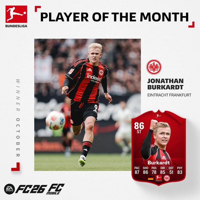 - 官方:法兰克福前锋伯卡特当选德甲10月最佳球员